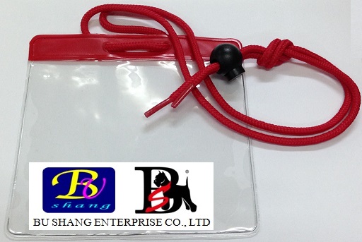 Colored Adjustable Rope Cord Lanyard with Matching Top Colored Bar, Soft Clear Vinyl ID Card Holder.